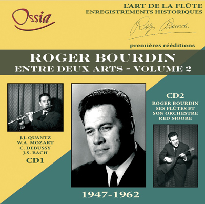 Créé en 2010 par les ingénieurs du son Alexis Frenkel et Christophe Hénault, le label OSSIA a pour vocation de faire découvrir ou redécouvrir les grands instrumentistes à vent français du 20ème siècle. Après des hommages rendus notamment à Jacques Lancelot, Marcel Mule et Ulysse Delécluse, c'est tout naturellement à l'immense flûtiste-compositeur Roger Bourdin que la collection a le plaisir de consacrer pour la première fois en CD et à partir des documents sonores originaux, une sélection d'enregistrements réalisés entre 1951 et 1961. Entre deux Arts ? Parce que Roger Bourdin, de formation classique, présentait la particularité très rare d'avoir ce don de compositeur et d'improvisateur qui lui permit d'élargir son art dans les domaines de la musique de variété et du jazz. « J’ai tout fait. C’est la chance de ma vie, mon équilibre et ma joie de vivre. » Il prêtait à la musique de danse sa virtuosité de soliste classique, révélant par ailleurs des sonorités nouvelles à la variété puisque certains de ses enregistrements réunissaient ainsi douze flûtes. Pour beaucoup, son nom reste attaché à sa célèbre improvisation sur la chanson Il est cinq heures, Paris s'éveille de Jacques Dutronc.